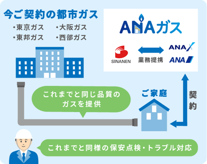 都市ガスの信頼性と品質はそのままにANAのマイレージが貯まります