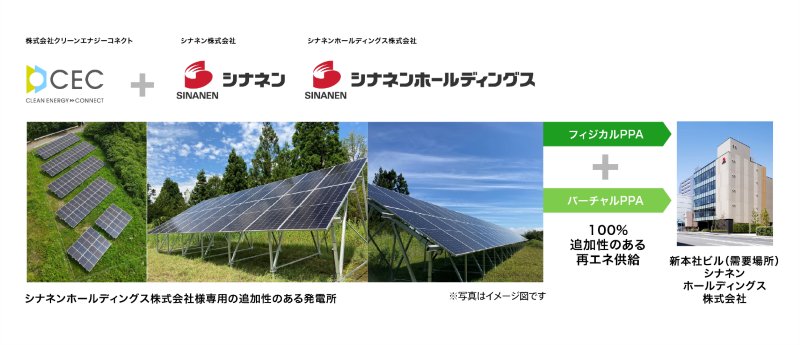 エネルギー・住まい・暮らしの総合サービス事業を提供するシナネンホールディングス株式会社(本社:東京都品川区、代表取締役社長CEO:中込 太郎)、子会社でエネルギーソリューションを提供するシナネン株式会社(本社:東京都品川区、代表取締役:小松 良則)、および脱炭素経営企業、RE100参加企業等のお客様に対して脱炭素ソリューションを提供する株式会社クリーンエナジーコネクト(本社:東京都千代田区、代表取締役:内田鉄平)は、オフサイトコーポレート PPA※1サービス(以下、本PPA)の仕組みを活用し、クリーンエナジーコネクトが開発した太陽光発電所から調達する再生可能エネルギー由来の電力をシナネンホールディングスの本社ビル(東京都品川区)に供給、及び環境価値の提供を2024年11月から開始しましたのでお知らせいたします。
