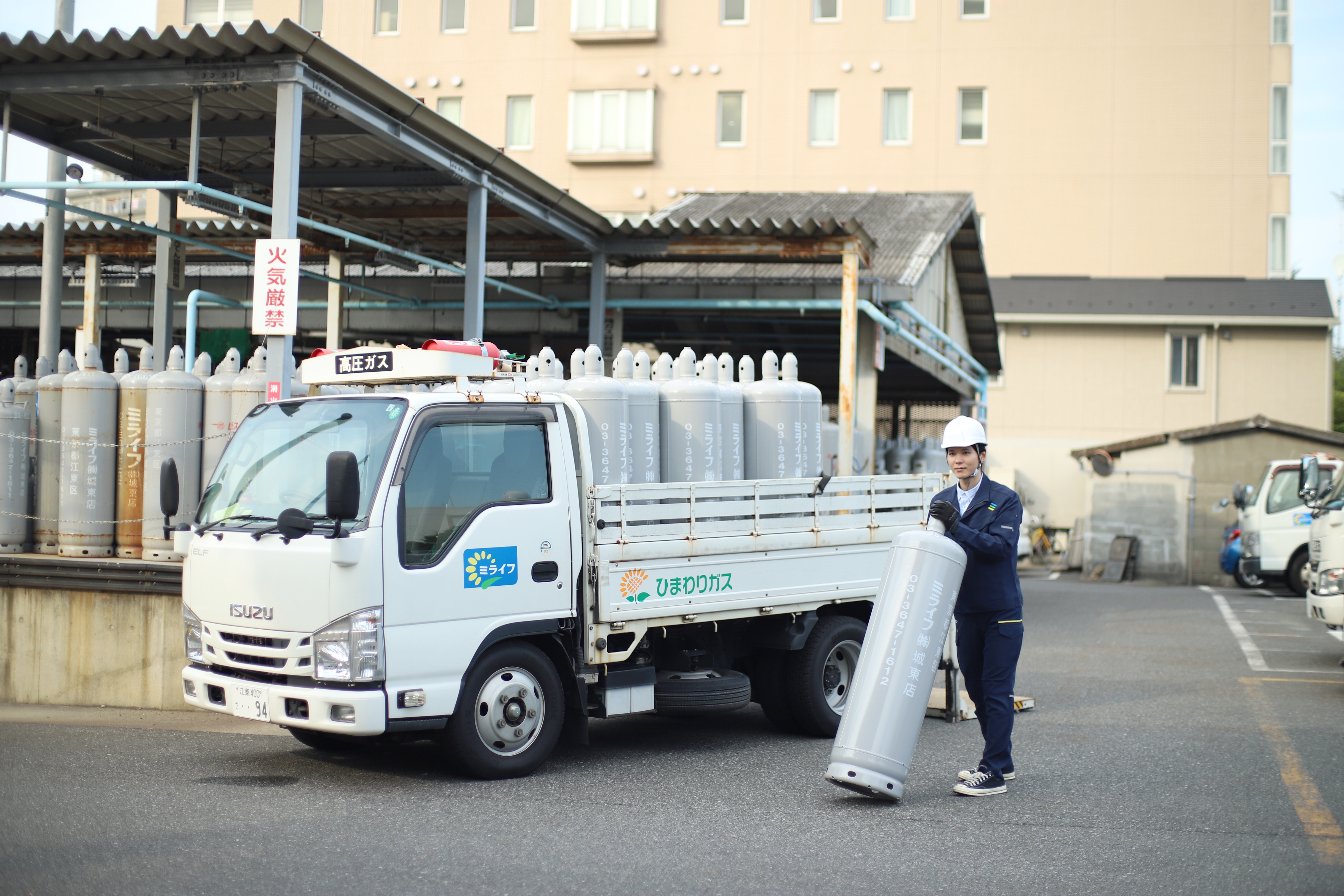 地震などが発生した際にガスボンベが転倒しないよう、ミライフでは転倒防止ベルトを二重に設置するサービスを行っています。大きな地震や津波等の災害はいつ発生するかわかりません。ダブルベルト(50kg容器対象)でお客様の安心をしっかりサポートします。