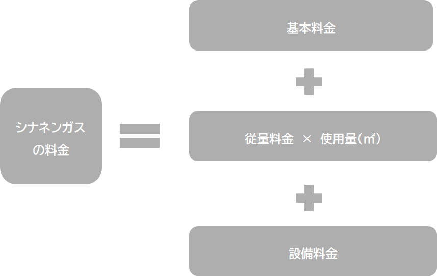 月々のガス料金は、毎月一定の金額がかかる「基本料金」とご使用量に応じてお支払いいただく「従量料金」によって決まります。