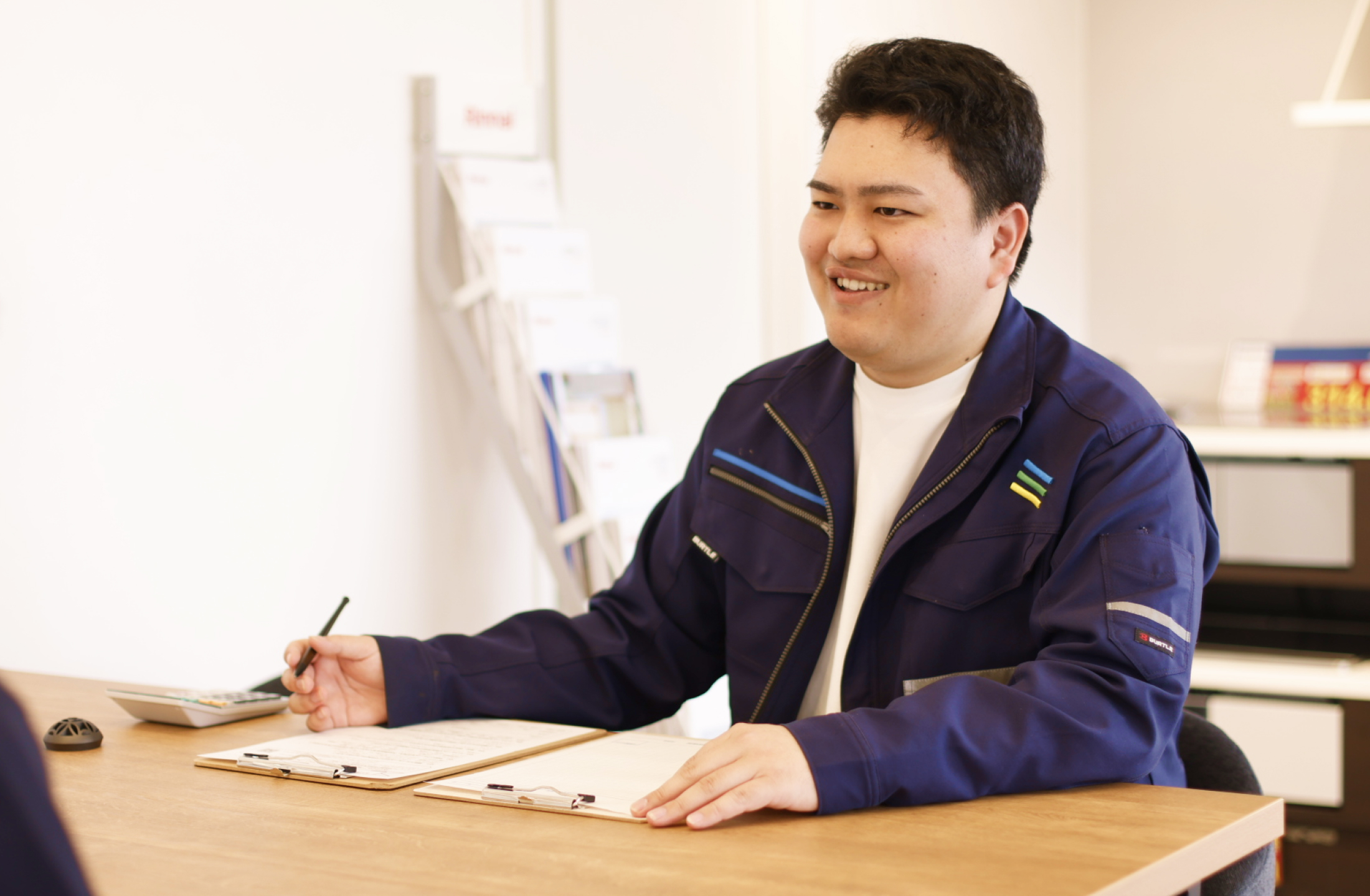 もともとは安定性を重視して公務員を目指していたものの、非正規雇用が多い実態やスキルアップしにくい環境に不安を感じ、進路変更を決意。安定していて、自分のスキルも広げられそうなインフラ業界を志し、100年近い歴史をもつシナネンと出会いました。業界的に内向きな体質の企業が多い中でも、シナネンは一人ひとりにフォーカスし、成長を後押ししてくれる企業だと感じたことが、興味をもったきっかけです。面接でも深く向き合ってくれたのが印象的でした。また、グループ全体で幅広く事業を展開しており、安定した基盤の上で新しいことに挑戦できる環境が整っていることも大きな決め手です。