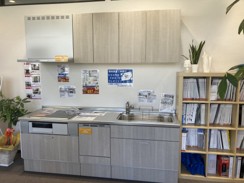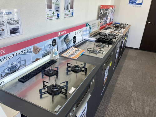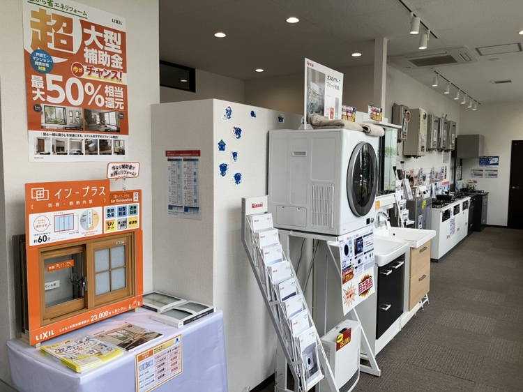 リフォーム商材、水廻り・ガス機器商品を数多く展示しております。