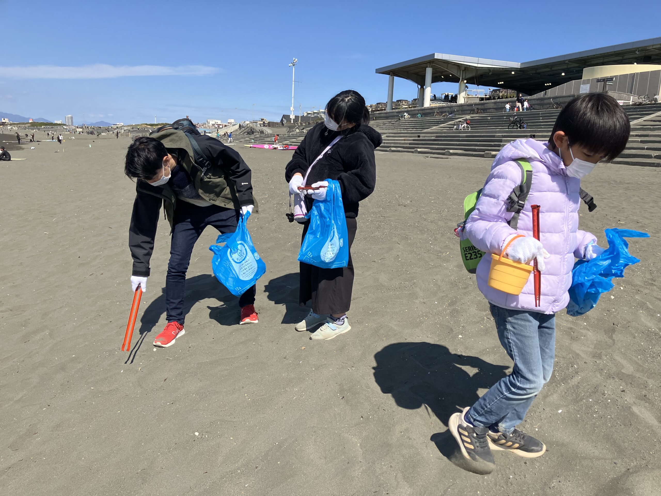 3月15日(日)、神奈川県藤沢市にある新江ノ島水族館(通称:えのすい)が主催する「第186回 えのすいecoデー」に参加し、水族館の目の前に広がる片瀬海岸でビーチクリーン活動を行いました。