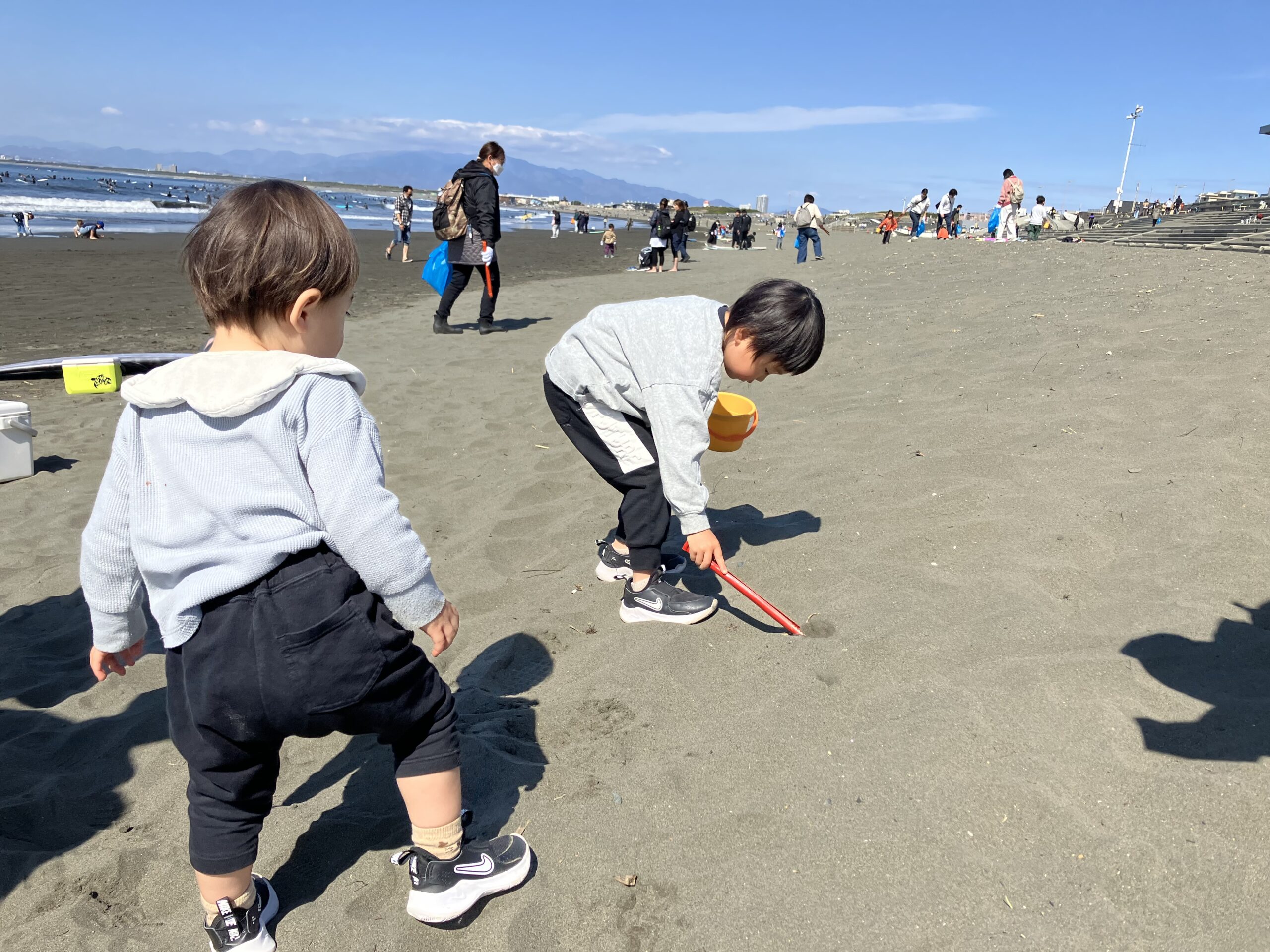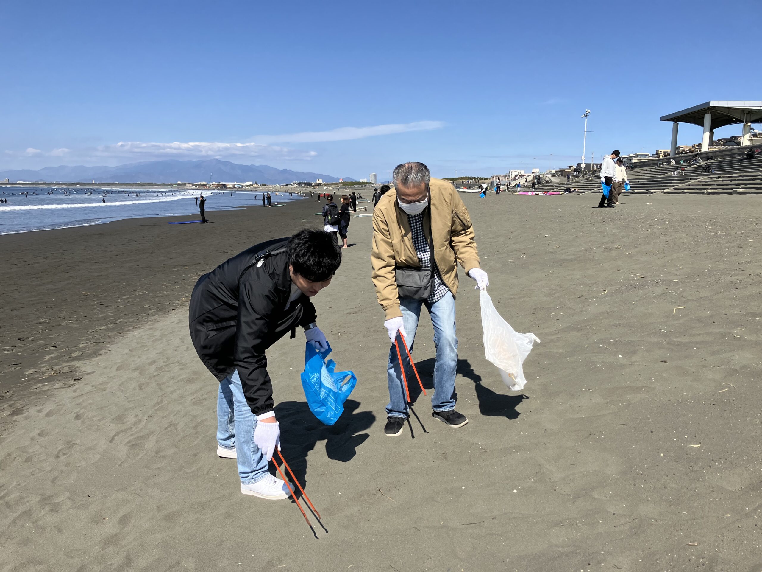 総勢79名の参加者が集合し10時からトングやバケツ、ゴミ袋を手に、波の音が心地よく響く海岸へ向かいました。道具が貸し出されるため、散歩や観光の合間に気軽に参加される方もいらっしゃいました。