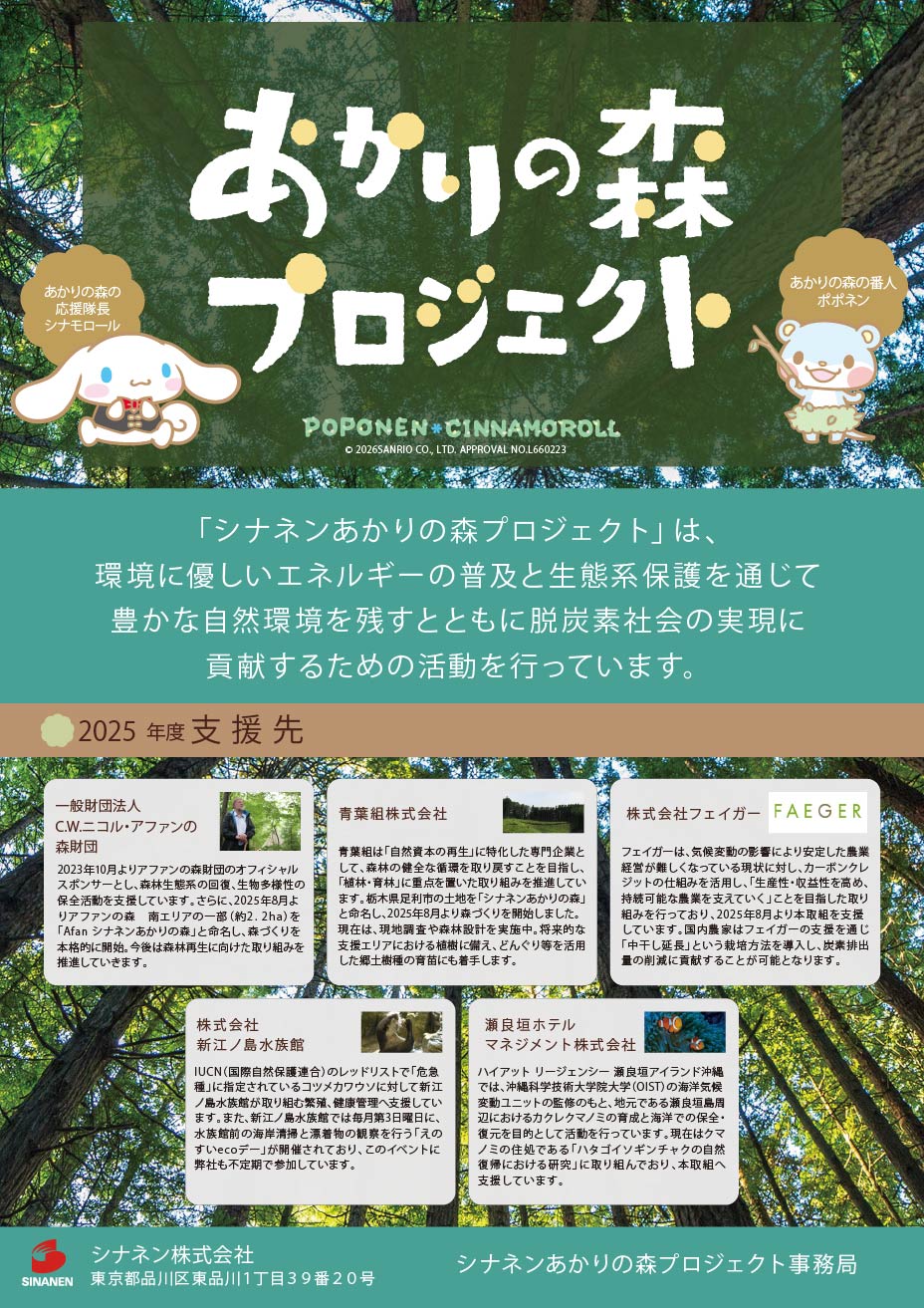 シナネンあかりの森プロジェクトでは、今後も新江ノ島水族館の取り組みに賛同し、清掃活動などの取り組みに参加していく予定です。