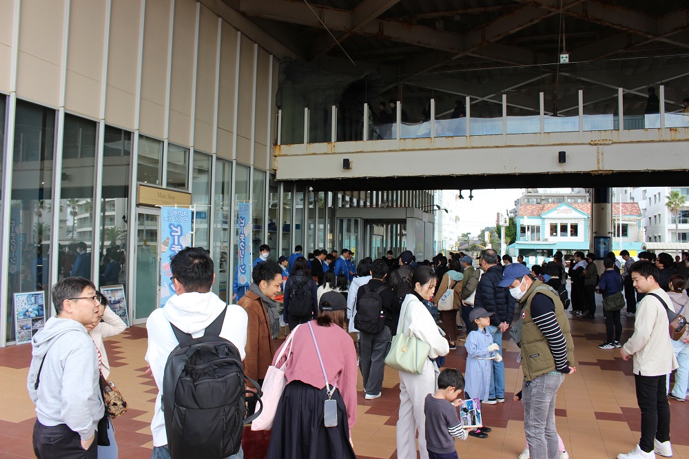 10時には133名の参加者が集合し、 新江ノ島水族館から貸し出されたトングやバケツ、 ゴミ袋を手に海岸へと向かいました。
