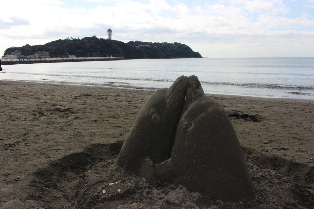 清掃終盤には、偶然見つけたサンドアートに足を止め、 記念撮影をする一幕もありました。