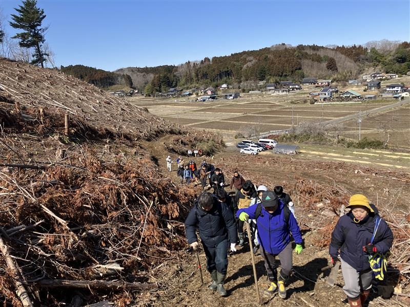 (栃木県茂木町 青葉組社有林を上る参加者たち)