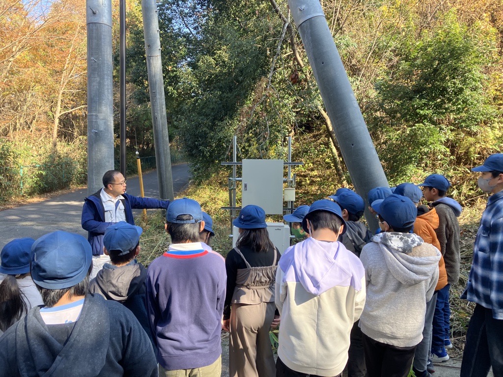 後半では、太陽光パネルや接続箱、パワーコンディショナー、分電盤、電力量計、引込柱などの設備を実際に見学しながら、それぞれの役割や仕組みを説明しました。